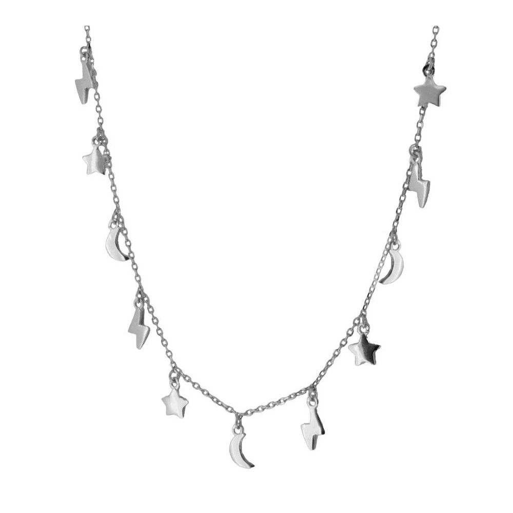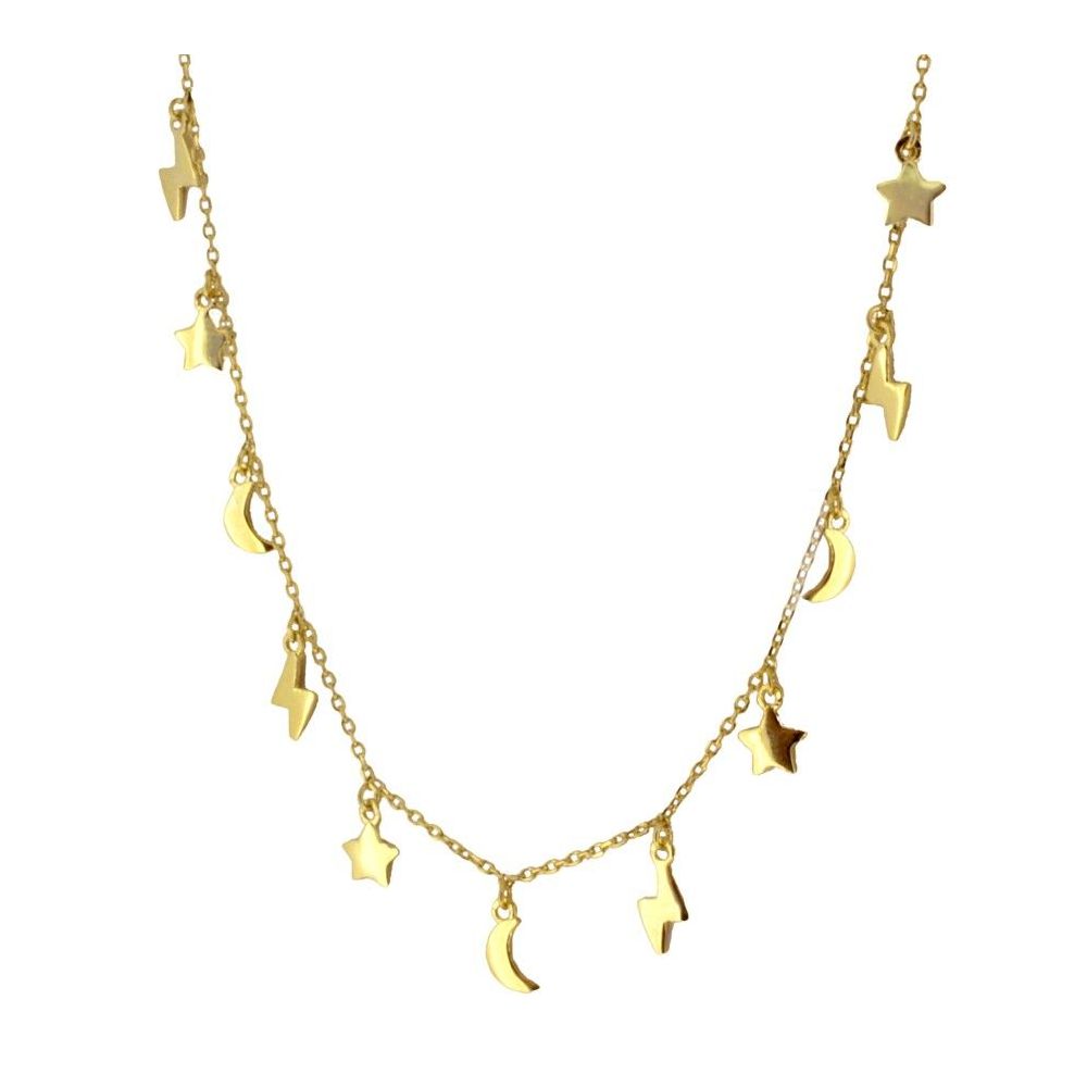 Choker 11 charms pendurados, estrela, lua e relâmpago disponível em prata esterlina e prata banhada a ouro 925.